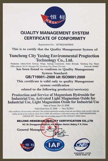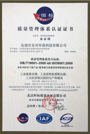 本公司有嚴格的質量保證體系,從鹽湖鹵水的養(yǎng)護調試,到生產過程中的每一道工序,都有嚴格的指標控制。利用天然鹽湖的鎂資源,再加上先進的工藝以及全不銹鋼設備為保證,使生產的各種鎂合物產品均能達到國家行業(yè)標準要求。